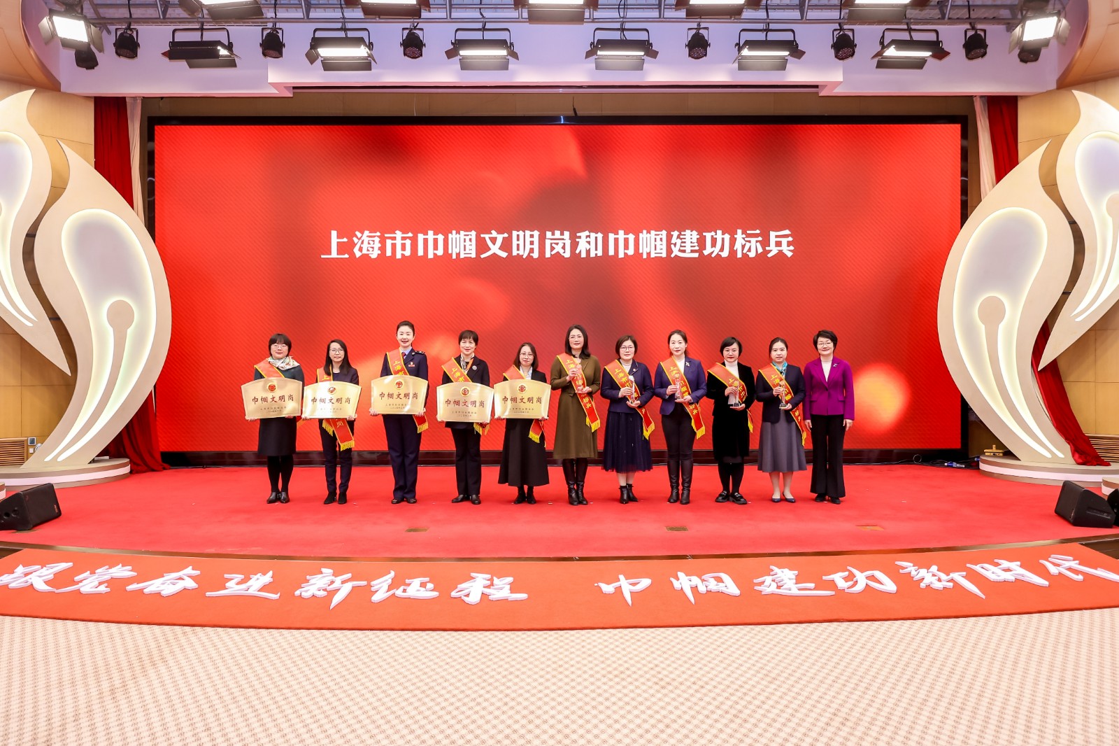上海市妇联党组书记、主席张华为浦东新区新获评的上海市巾帼文明岗和巾帼建功标兵颁发证书。浦东新区领导向获评人员表示祝贺,并向全区广大妇女同胞致以节日祝贺和美好祝福。
